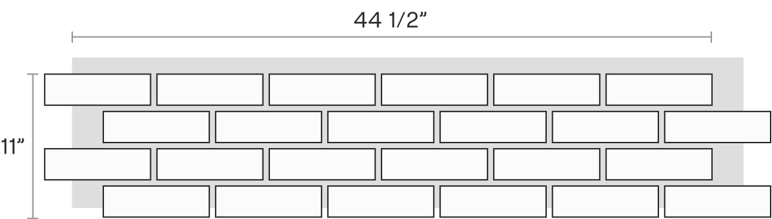 44 1/2″ x 11″ staggered panels (actual coverage, does not include the flange)